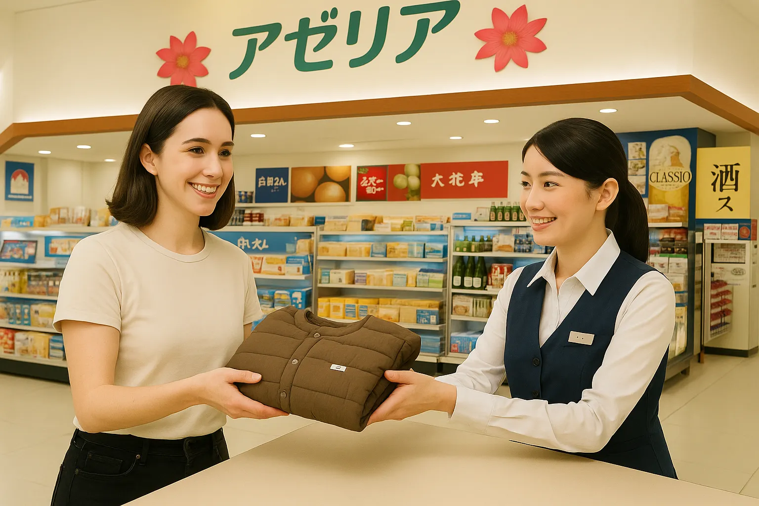 旭川空港2階、お土産ショップ「アゼリア」が受取カウンターご注文完了メールに記載の『名前』と『確認番号』を伝えて、商品を受け取ろう!
